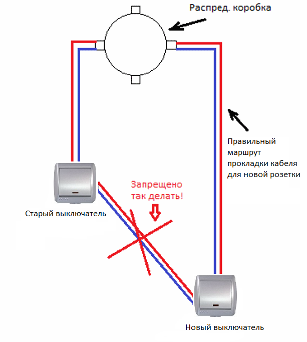 Cette méthode présente à la fois des avantages et des inconvénients. Le principal avantage est qu'il est facile et simple à faire. Il suffit de poser le câble de l'ancien interrupteur au nouveau. Il y en aura deux. En règle générale, un câble plat est utilisé pour déplacer les prises.