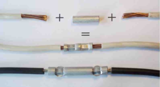 La meilleure option pour connecter des fils différents est le sertissage. L'essence de cette méthode est que les veines sont dépouillées d'oxyde, recouvertes d'étain chaud. Ensuite, les fils sont insérés dans le manchon GML, qui est pressé.