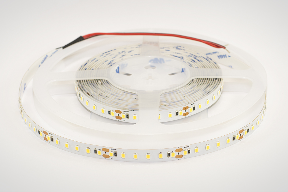 La luminosité de la bande LED dépend en partie de la densité des diodes : plus il y en a par mètre courant, plus l'éclairage est uniforme et lumineux.