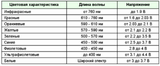 Pour savoir combien de volts la LED est, vous pouvez utiliser un multimètre ou déterminer par la couleur de la lueur. Pour la première méthode, vous avez besoin d'un multimètre et d'une résistance - la valeur apparaîtra sur l'écran après l'assemblage.