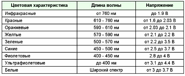 La puissance d'une diode dépend de plusieurs facteurs liés. Pour les LED, la valeur varie de 0,5 à 3 W. Il est calculé selon la loi d'Ohm : il faut multiplier les valeurs du courant et de la tension. La caractéristique courant-tension (VAC) de la LED est également déterminée.
