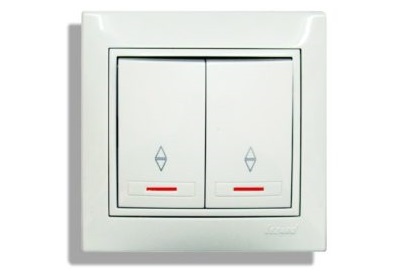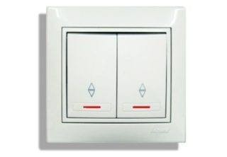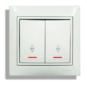L'interrupteur à bascule est composé de deux touches sans désignations standard, mais son double objectif peut être jugé par les flèches multidirectionnelles. Les boutons en un seul corps se distinguent par l'indépendance des circuits, ce qui assure le contrôle de deux lignes d'éclairage. La fermeture du circuit électrique s'effectue de manière autonome avec 2 boutons.