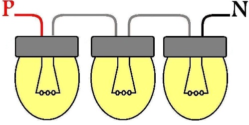 - Les ampoules sont connectées en série. La connexion en parallèle assure le fonctionnement normal de la ligne lorsqu'un élément grille.