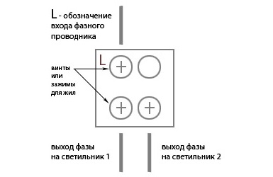 Les bornes sont des mécanismes de serrage spéciaux pour assurer un contact fiable. Pour commuter le fil, vous devez d'abord le dénuder et l'insérer dans le bornier, le serrer avec une pince à linge ou une vis (selon la modification de l'interrupteur). La borne commune ou d'entrée est généralement séparée et marquée d'un L.