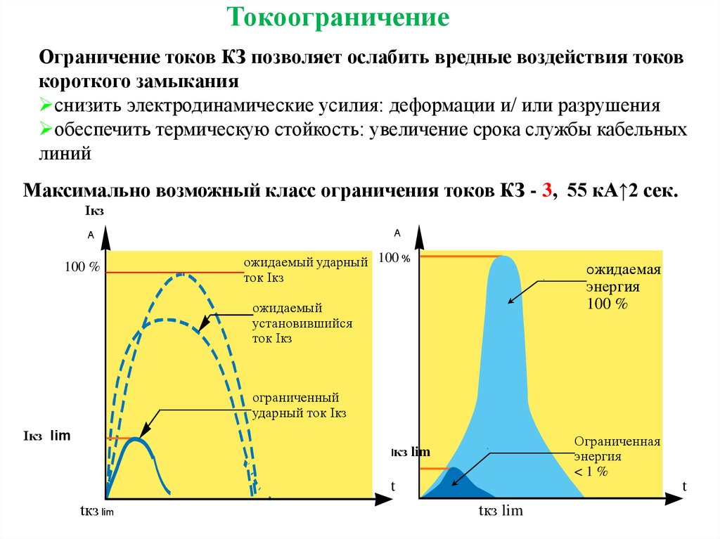 La classe de limitation de courant indique combien de temps il faut pour éteindre l'arc qui se produit lors de la commutation de courants élevés. Il existe 3 classes de commutateurs qui diffèrent par ce paramètre :