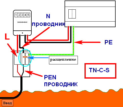 - TN-C-S. Recommandé par PUE, mais uniquement adapté aux nouvelles autoroutes avec un entretien régulier.