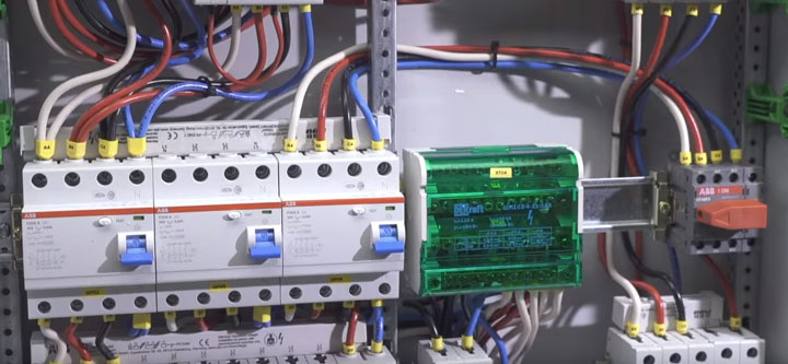 Après le RCD, un cross-module est installé, où la phase est démarrée. Des disjoncteurs sont lancés à la sortie.