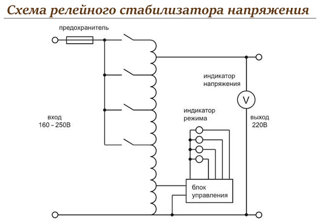 - Système de contrôle. Vous permet de surveiller la tension de sortie, l'amenant à un indicateur stable de 220 V. L'équipement fonctionne avec une erreur de 10-15%.