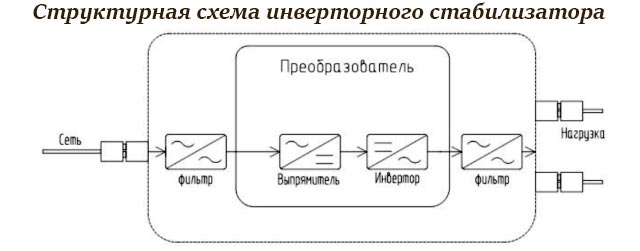 Les appareils avec onduleurs se caractérisent par une réponse rapide, une efficacité de 90%, un fonctionnement ininterrompu et silencieux dans la plage de 115 à 300 volts.
