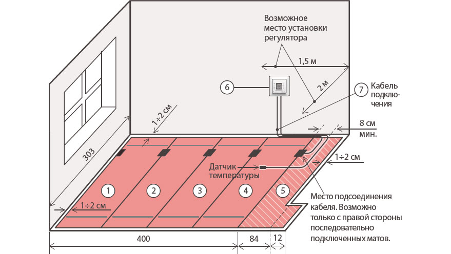Si nécessaire, le contrôleur allume ou éteint les éléments chauffants, de manière cyclique. Par conséquent, le chauffage par le sol fournit une température d'air stable dans la pièce sans aucune difficulté.
