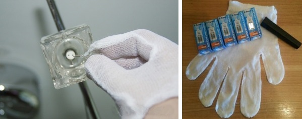- Installation des éléments avec des gants ou à travers un chiffon propre et sec. Cela est dû au fait que des taches de graisse et des empreintes restent sur l'ampoule en verre. Plus tard, en raison de la température élevée de la lampe chauffée, des taches noires se forment sur son corps. C'est la graisse brûlée de l'empreinte laissée. De telles marques entraînent une surchauffe à l'intérieur de l'ampoule et sa défaillance ultérieure.