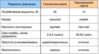 Sur la base de la connaissance des paramètres répertoriés et de la différence entre les deux types de lampes, le maître peut choisir le type d'élément pour les conditions spécifiques de leur utilisation.
