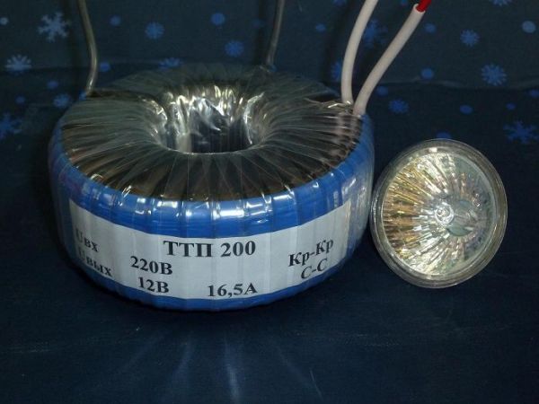 - toroïdal. Il est considéré comme le plus simple. Il est assemblé à partir d'un noyau et de deux enroulements. Les principaux avantages sont une excellente fiabilité, une connexion facile, un prix bas.