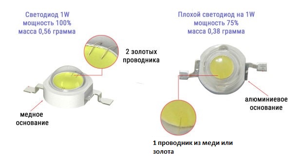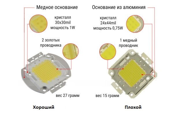 - Cuivre. Il évacue bien la chaleur de la puce, mais a plus de poids. Les diodes chauffent pendant le fonctionnement.