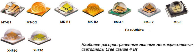 Des LED ultra-lumineuses avec des puissances nominales allant jusqu'à 4 W sont disponibles dans les variantes MX et ML. Ils diffèrent par le type de corps, mais sont similaires par l'angle de la lueur de 120 degrés. Les appareils émettent une lueur froide et chaude, et leur rendement lumineux est lié à la puissance. L'augmentation de la tension d'alimentation augmente la durée de vie des éléments sans affecter la qualité de la lumière.
