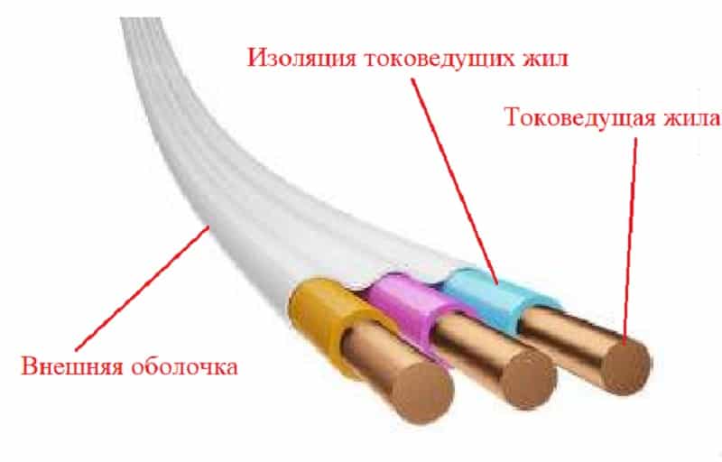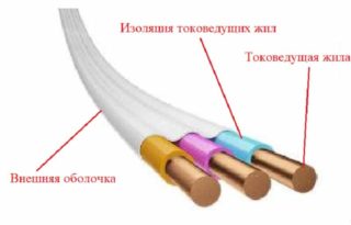 Chacun des deux ou 3 noyaux de travail est protégé par une gaine en PVC séparée, tandis que la gaine extérieure globale est faite du même matériau. Ils ne diffèrent pas par les indicateurs à haute résistance et sont parfois déjà endommagés au stade de la vente. Lors de l'achat de PUNP, l'attention est également attirée sur cela.