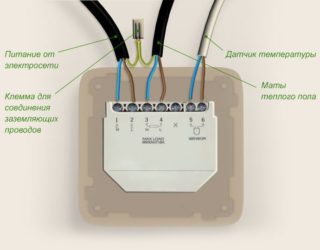 Le chauffage au sol est équipé d'un thermostat et d'une sonde de température. Le thermostat peut être mécanique et électronique, avec son aide le régime de température est réglé. Le capteur mesure la température du chauffage par le sol et est relié au contrôleur par un fil. Une rainure est faite pour les appareils dans le mur et un trou est fait à une hauteur de 80-100 cm.Le capteur est placé dans un tuyau ondulé. Il protège l'appareil et permet son remplacement. Le capteur thermique est posé entre les spires du câble, la distance par rapport au mur est de 50 cm.
