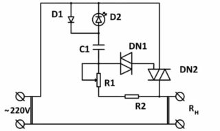 Une caractéristique de la première solution de circuit est l'utilisation d'un seul triac. Au moyen d'un tel régulateur, répété sous la forme d'un produit maison, il est possible de contrôler les modes de fonctionnement d'un fer à souder domestique d'une puissance allant jusqu'à 0,09 kW. De plus, si vous possédez un appareil, vous pouvez régler la luminosité d'une lampe de bureau ou la vitesse de rotation d'un ventilateur électrique.
