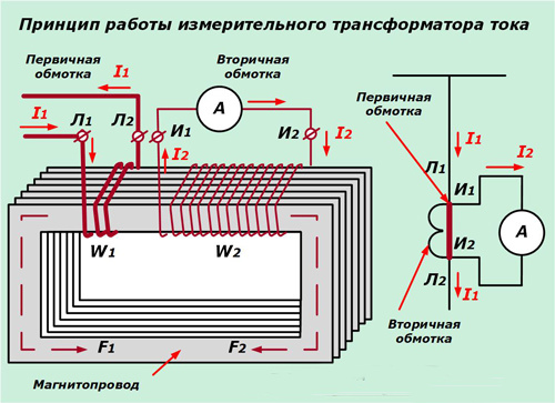 - comme enroulement primaire dans les transformateurs de courant, le bus d'alimentation est utilisé, sur lequel il est monté;