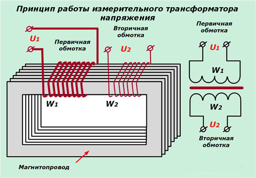 L'objectif principal des transformateurs de tension est de convertir le signal d'entrée au niveau spécifié par les tâches de l'utilisateur - lorsque le potentiel de fonctionnement doit être réduit ou augmenté. Ceci peut être réalisé grâce au principe de l'induction électromagnétique, formulé comme une loi par les scientifiques Faraday et Maxwell. Selon lui, dans toute boucle située à proximité d'une autre spire similaire du fil, une CEM est induite avec un courant, proportionnel au flux d'induction magnétique les pénétrant. L'amplitude de cette induction dans l'enroulement secondaire du transformateur (constitué de plusieurs de ces spires) dépend du courant dans le circuit primaire et du nombre de spires dans les deux bobines.