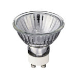 Les ampoules halogènes sont les ampoules sur rail les moins chères. Ils sont utilisés dans les centres commerciaux. La lumière est proche du soleil chaud. La durée de vie est d'environ 8 000 heures. Les ampoules halogènes consomment beaucoup d'énergie.