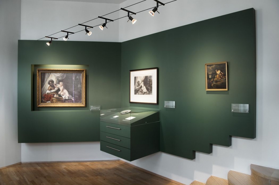 Dans les couloirs, des systèmes de rails sont installés le long des murs. Ils peuvent illuminer des miroirs et des tableaux.