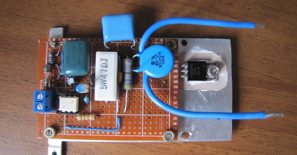 Les éléments électroniques répertoriés sont soudés de manière articulée selon le schéma donné dans les sources. Avec d'autres composants, il contient un transistor clé qui fournit des impulsions stabilisées à la diode de commande de la paire d'optocoupleurs.