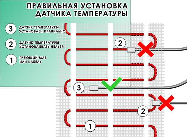 Une erreur tout aussi courante que commettent souvent les artisans novices est de verser le capteur de température dans la chape. Cela ne peut pas être fait, le capteur doit être placé dans un tube ondulé et seulement ensuite rempli d'un coupleur. Si le capteur thermique casse, il sera difficile de réparer la casse lorsqu'il est installé dans une chape sans tube.
