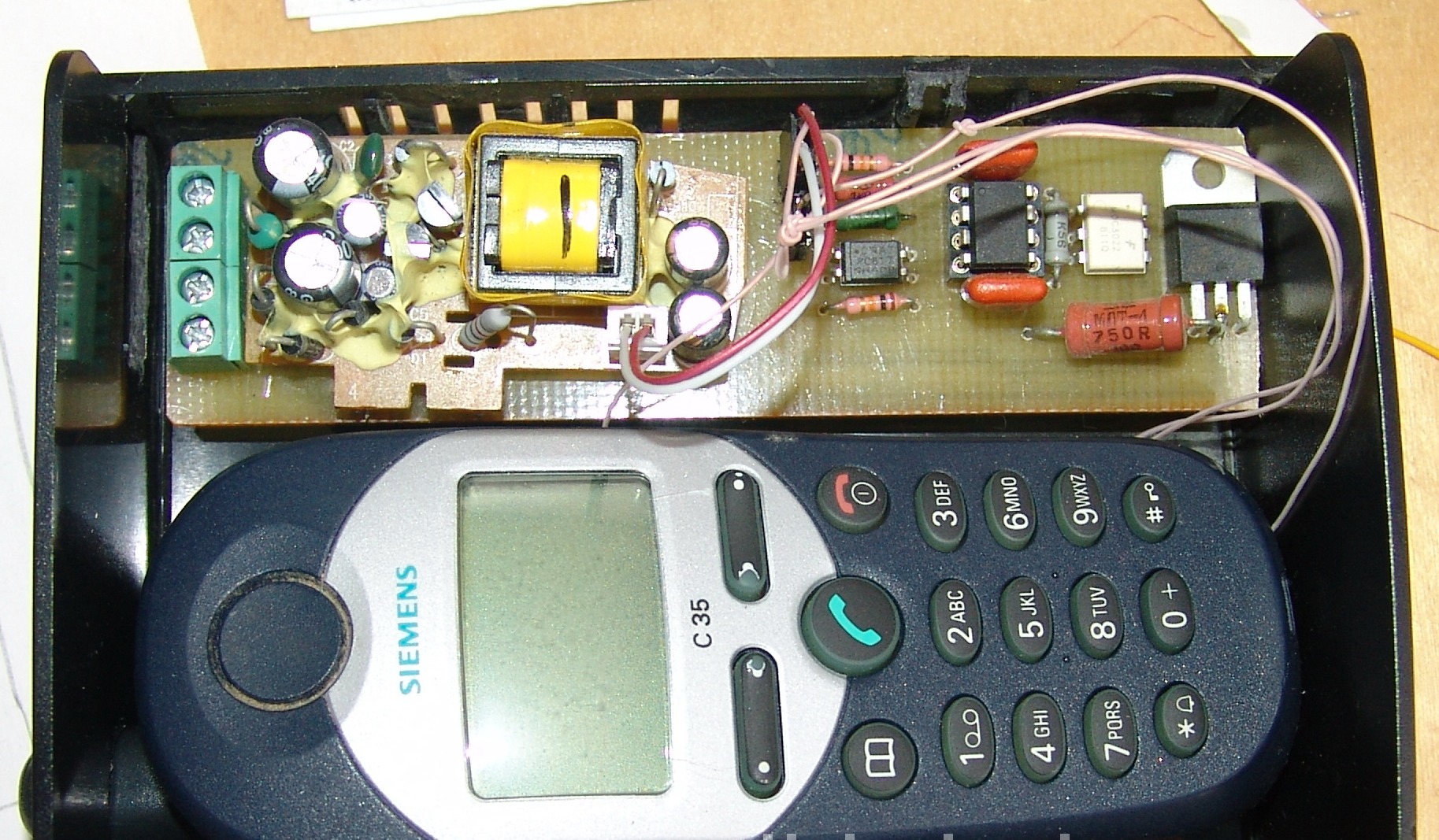 Une fois connecté, l'appareil cellulaire passe en mode de tonalité DTFM. Il est lu par un bloc relié par le connecteur X1 à la prise casque du téléphone. Lorsqu'il reçoit une commande, un relais est déclenché on/off, ce qui modifie la charge au point d'alimentation.