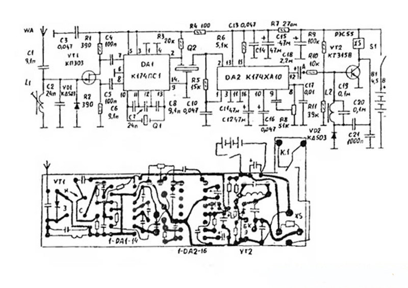 - L'émetteur est démonté et les patchs sont fermés sur sa carte par analogie ci-dessus. Le corps est assemblé en arrière.