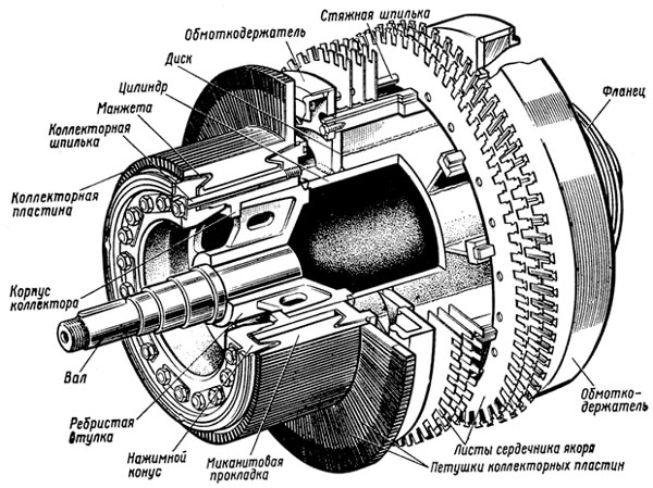 - Dans les générateurs à courant continu, pour chaque moitié de l'enroulement dans l'ensemble collecteur, il y a des demi-anneaux isolés les uns des autres. Du fait que ces demi-anneaux changent constamment avec les balais, le courant ne change pas de direction, mais pulse simplement.