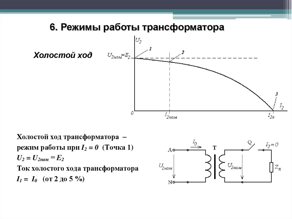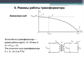 Au repos, l'appareil fonctionne à vide et consomme un minimum de puissance dissipée uniquement dans l'enroulement primaire. Le courant y est également minime et ne dépasse généralement pas 3 à 10% de la valeur observée avec la charge connectée. Dans le second cas, un courant commence à circuler dans les spires de l'enroulement secondaire, dont la valeur est inversement proportionnelle au nombre de spires de la bobine.