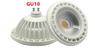 - GU10 est un type de socle équipé d'une douille pour la douille. Dans ce cas, les chiffres ne parlent pas du diamètre de la base, mais de l'espacement entre les centres des broches. Dans ce cas particulier, le socle/socle est équipé de deux broches, la distance entre elles est de 10 mm. Une caractéristique de conception caractéristique est un renflement notable à l'extrémité des contacts pour une connexion pivotante avec le mandrin.