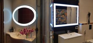 Il est important de savoir comment se trouve l'éclairage du miroir de la salle de bain. S'il s'agit d'une lampe en haut au centre, l'image sera déformée, vous devez donc répartir uniformément les sources lumineuses afin qu'elles soient également sur les côtés.
