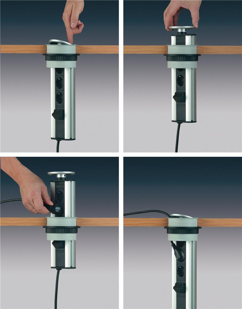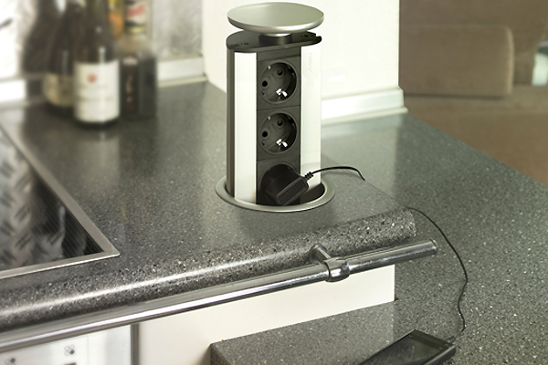 Les prises rétractables sont extrêmement pratiques pour une utilisation en cuisine. Ceci est particulièrement visible lors de l'utilisation de périphériques qui ne nécessitent pas de connexion permanente au réseau.