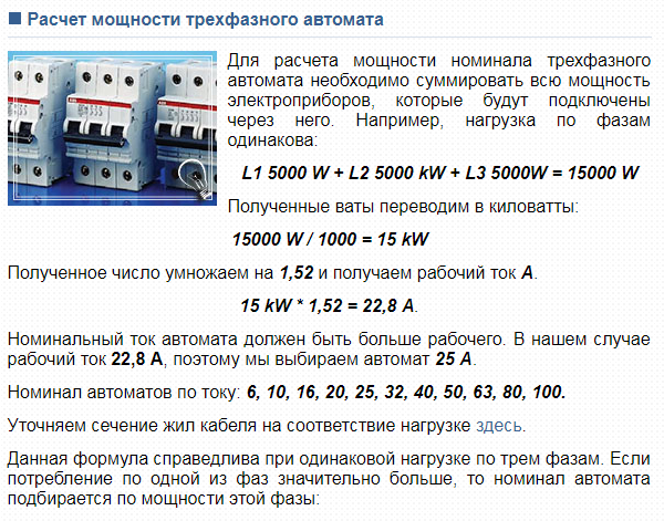 Avec le courant nominal, la puissance que cet appareil peut commuter sans risque de panne est estimée. Pour les machines d'entrée, sa valeur ne dépasse pas 5,5 kW - cet indicateur est sélectionné pour un circuit monophasé. Un paramètre nettement plus important - jusqu'à 9,5-16 kW - est autorisé lorsque l'appareil est connecté à un réseau triphasé.