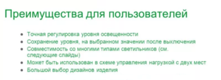 L'utilisation de gradateurs vous permet de résoudre un certain nombre de problèmes esthétiques et pratiques. Cela a largement déterminé la popularité des appareils et leur utilisation généralisée dans l'aménagement de locaux résidentiels et commerciaux.