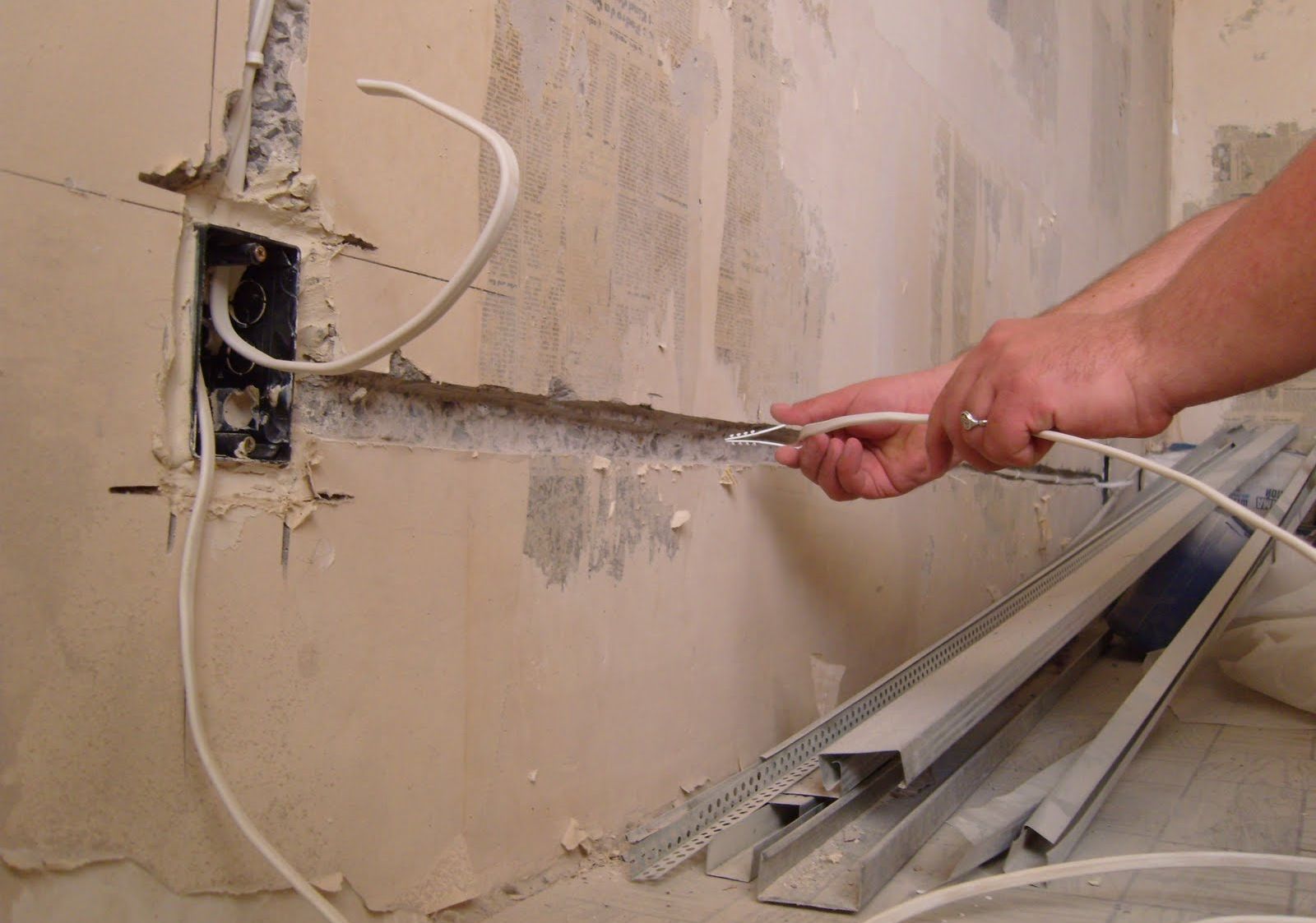 - Démontage du câblage. Dans certains cas, il n'est pas possible de retirer les anciens fils, ils peuvent alors être laissés dans le mur. Les anciens câbles doivent être déconnectés du blindage, leurs extrémités doivent être isolées.