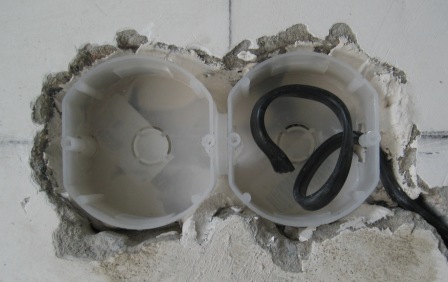 - Sous le plâtre - les fils sont insérés dans des trous pré-percés, fixés et sortis pour les consommateurs. Les lignes sont masquées par une couche de plâtre pour éviter les dommages dus aux fluctuations de tension.