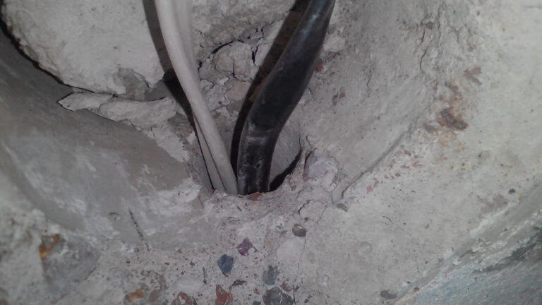 - Sous le sol - la ligne est tracée sous la surface du sol. Des canalisations sont posées, qui sont ensuite remplies de mortier. Les lignes pour les prises et l'éclairage sont masquées par une boîte ou un tuyau de montage.