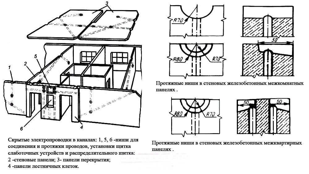- Maisons à panneaux de 1965 - le cheminement des fils et la pose cachée ont été effectués dans les canaux des dalles à panneaux;