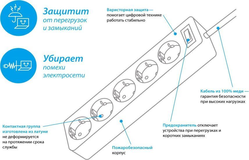 Les constructions électriques présentent des avantages significatifs par rapport aux analogues - un coût abordable et une conception simple. Malgré la faible puissance, le filtre est capable de protéger les appareils électroménagers en cas de surtensions jusqu'à 450 volts. Comme le montre la pratique, même si le fabricant revendique des performances élevées, le parasurtenseur ne résiste pas au-dessus de 450 volts - il grille, mais laisse en même temps intacts les appareils ménagers coûteux.