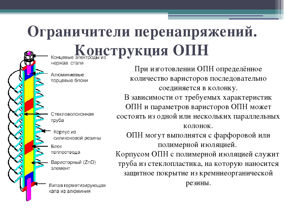 La protection contre les surtensions dans le réseau des lignes aériennes et des postes de transport est réalisée à l'aide de parafoudres - limiteurs de surtension non linéaires. La structure comprend une varistance. La non-linéarité consiste en la variation de la valeur de résistance en fonction de la valeur de tension appliquée.