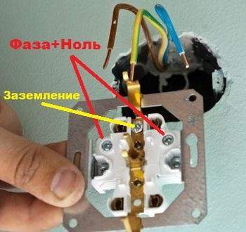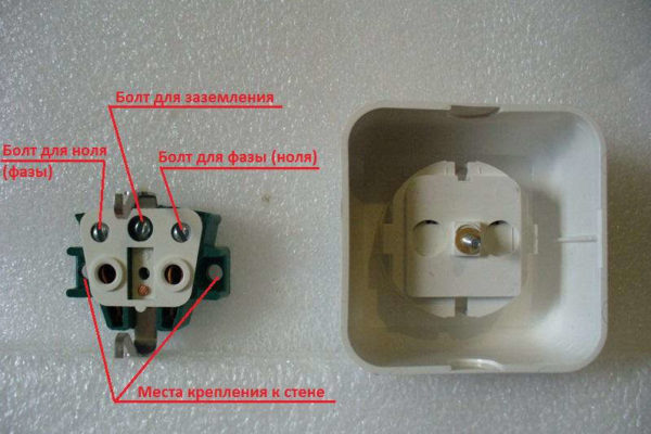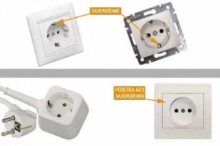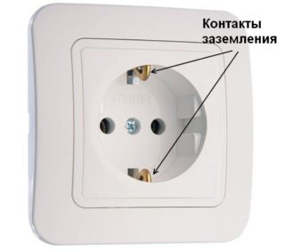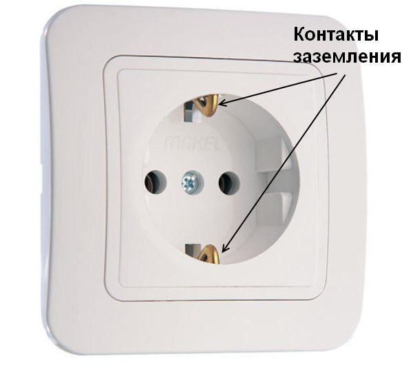 La différence externe entre les prises avec mise à la terre consiste en la présence de ressorts métalliques sur les côtés de la prise, qui sont en contact avec les bornes de la fiche. Les ressorts sont amenés au troisième contact situé au milieu entre la phase et le zéro, auquel le câble de mise à la terre est connecté.