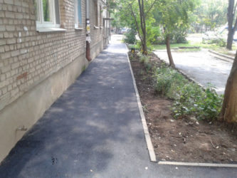 - Asphalte. Il est extrêmement difficile à préparer, et encore plus uniformément cette substance. La location d'un camion et d'un rouleau est si chère qu'elle ne couvre pas les avantages de la couverture. Il faut également tenir compte de la particularité de l'asphalte, qui devient mou à la chaleur et dégage une odeur piquante de bitume.