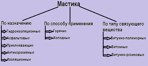 Par origine, la matière est naturelle et artificielle. Le bitume de construction est destiné aux travaux de béton. Il existe des grades spéciaux pour les toitures et les revêtements routiers. Le matériau est vendu en briquettes pour faire un composé imperméabilisant visqueux, il est versé avec un solvant ou chauffé pour fondre. De plus, le bitume est un prix abordable.