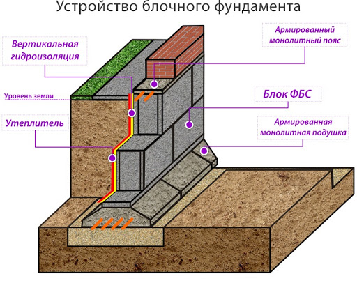 Les produits préfabriqués sont utilisés pour construire les fondations de structures à plusieurs étages avec un poids important et pour ériger le support d'une maison dans une construction privée. Le niveau de demande dicte la résistance de la fondation en blocs, qui est en outre dotée d'un cadre métallique à l'intérieur de chaque pièce.