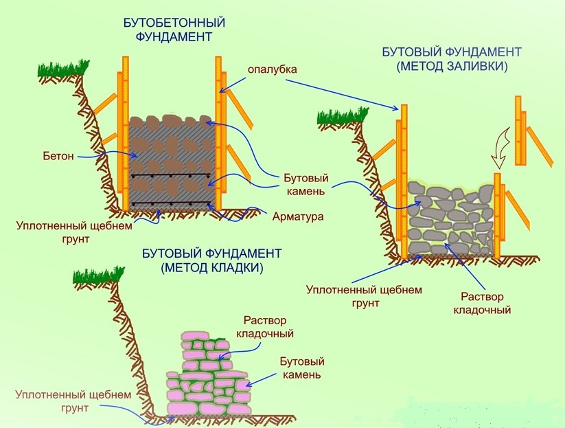 La fondation en moellons est connue en construction depuis plusieurs millénaires. La pierre naturelle était utilisée pour la construction de bâtiments résidentiels, de structures domestiques, de temples et même de forteresses. Aujourd'hui, ce matériau est quelque peu supplanté par le béton, mais ne perd toujours pas de sa popularité. La fondation buta présente de nombreuses caractéristiques positives, mais sa construction présente certaines difficultés.