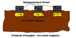 La pose d'une fondation de ce type est réalisée dans des fosses carrées dont la taille est de 1 x 1 m Avant d'installer la brique, un coussin de sable est posé au fond, qui est compacté.