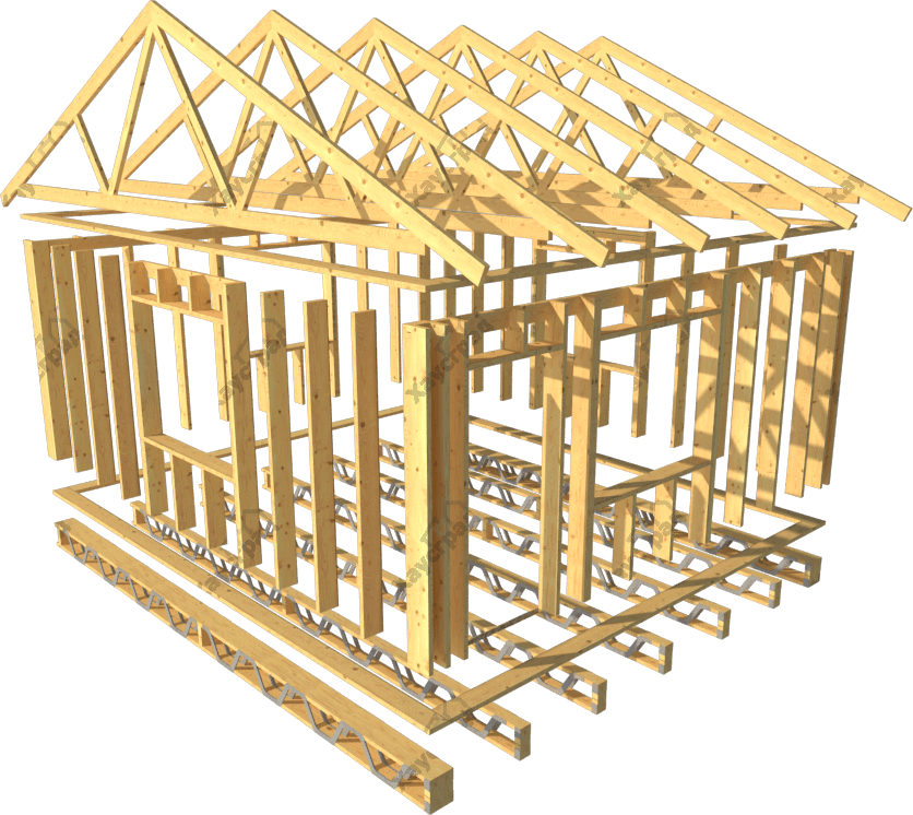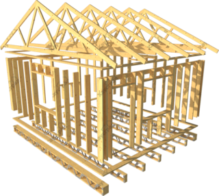 Une maison à ossature standard est assemblée à partir de crémaillères, de linteaux et de poutres. Le cadre est gainé de panneaux à l'intérieur et à l'extérieur.